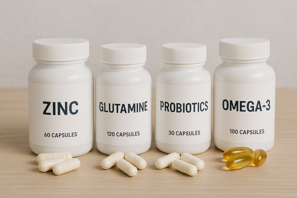 - Suplementación con glutamina y zinc: Nutrientes clave para la regeneración epitelial (39,40,41,42 43)